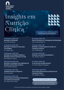 A Unidade Científico-Pedagógica de Dietética e Nutrição da Escola Superior de Tecnologia da Saúde do Politécnico de Coimbra (ESTeSC-IPC), promove, entre os dias 14 de novembro de 2025 e 6 de fevereiro de 2026, o ciclo de webinares “Insights em Nutrição Clínica”.